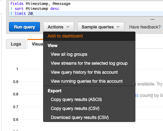 You won’t want to be typing in that query every time you want to see the results. You can save the query to a dashboard by clicking on ‘Add to dashboard’.