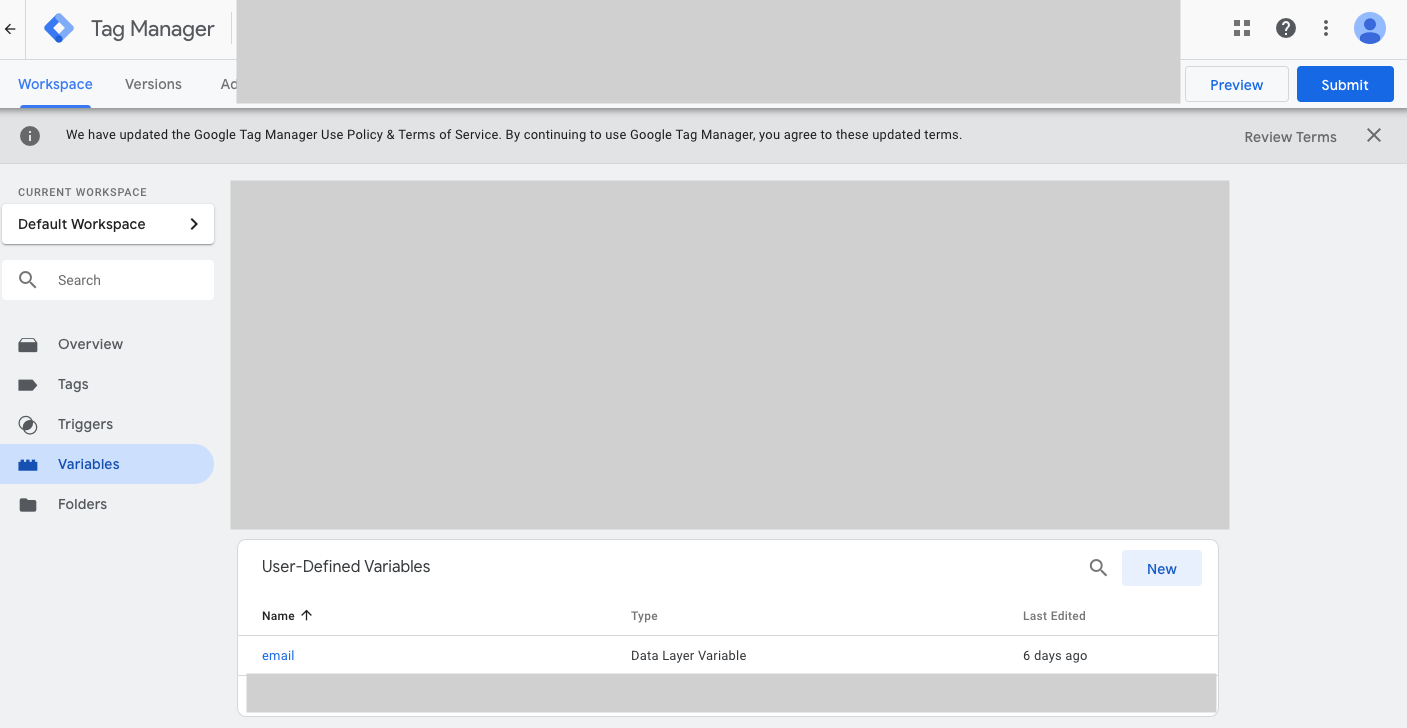 First make a new user defined variable called ’email’ that is of type ‘Data Layer Variable’.